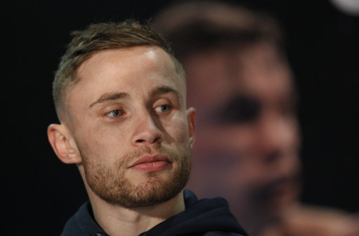 Boxer Carl Frampton pauses during a press conference in Belfast, Northern Ireland, Thursday, Feb. 26, 2015. Frampton was addressing the media ahead of his IBF World Super Bantamweight title fight against his challenger Chris Avalos of the U.S. (AP Photo/Peter Morrison)