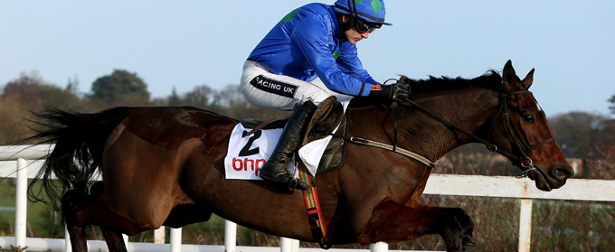 Hurricane Fly ridden by Ruby Walsh clears the last first time around on the way to win the BHP Insurance Irish Champion Hurdle during January Jumps Weekend at Leopardstown Racecourse, Dublin, Ireland.