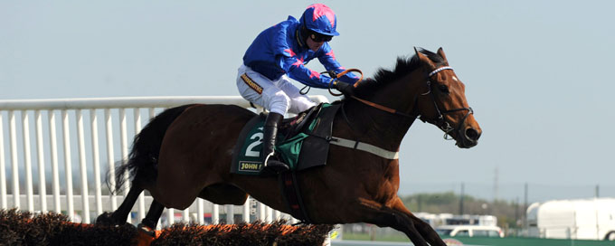 Cue Card ridden by Joe Tizzard during the John Smith’s Mersey Novices’ Hurdle