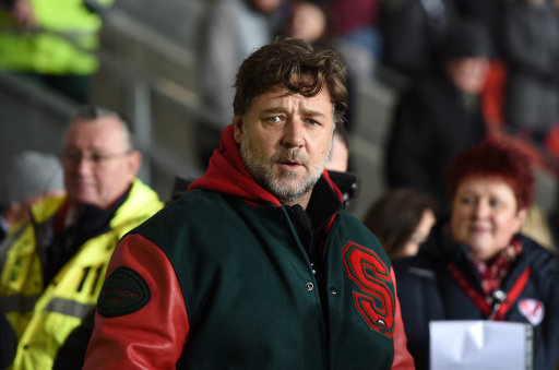 South Sydney Rabbitohs co-owner Russell Crowe before the World Club Series match at Langtree Park, St Helens.