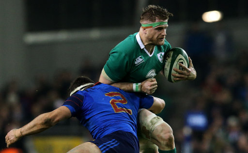 Ireland’s Jamie Heaslip and France’s Guilhem Guirado (left) during the 6 Nations match at Aviva Stadium, Dublin.