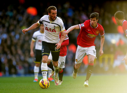 Tottenham Hotspur’s Harry Kane battles for the ball with Manchester United’s Paddy McNair (right) during the Barclays Premier League match at White Hart Lane, London.