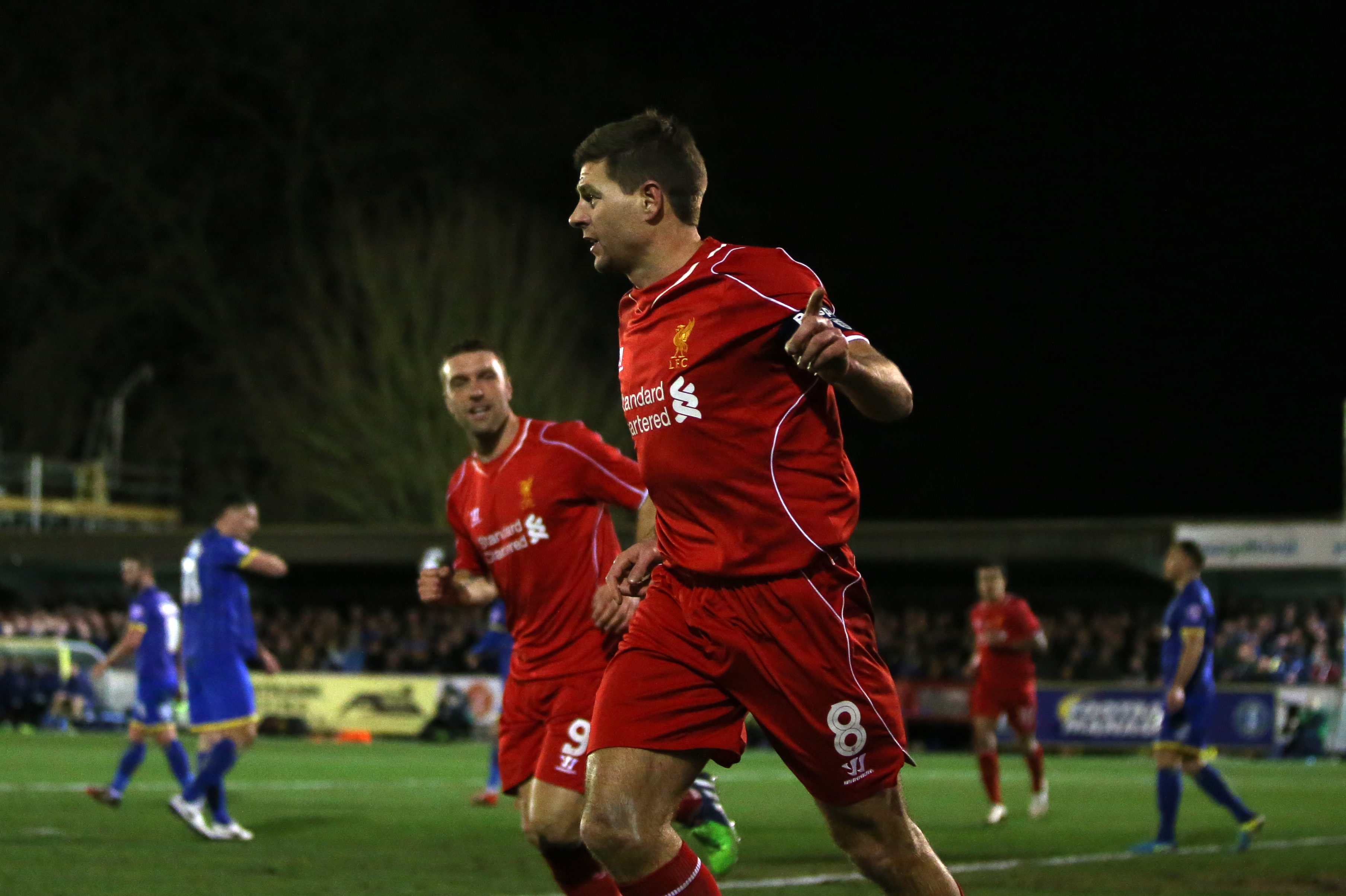 Liverpool’s Steven Gerrard celebrates scoring his sides first goal of the game