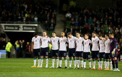 Republic of Ireland team stand for a moments silence