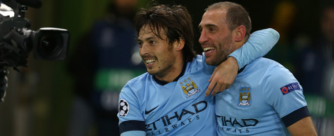 Manchester City’s Pablo Zabaleta (right) celebrates scoring his side’s second goal of the game with teammate David Silva